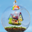 Fully detailed, beautiful and unique UP Flying House with Balloons DIY Miniature in a glass crystal ball! For all DIY, UP movie and miniatures fans! This is an Voice Control Led Lights DIY Miniature House Model Glass Globe. Novelty Miniature Model Kit With Furniture Dollhouse Toy. Great gift idea.