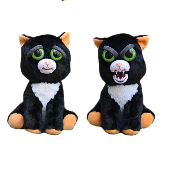 This frightful kitty is only 20cm tall- but don't let Katy Cobweb know that- unless you wanna see the feisty side of this pet! Turn your sweet and innocent looking stuffed animal into a feisty pet by giving it a little squeeze behind the ears. These pets have an endearing resting face and are great for cuddle time- and their animated alter ego is fun for play and to give your friends...or foes, an unexpected surprise! Stuffed with polyester fibers and is surface washable