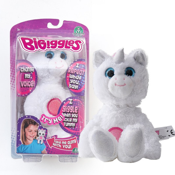 BiGiggles Phoebe The Unicorn Talking Plush. Character goes wherever you go with the help of a hidden magnet attachment. Rides alsong with you on your shoulder wrist, etc.