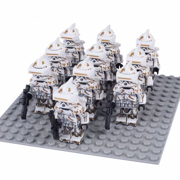 Clone Desert Soldier Star Wars Brick Minifigure Custom Set 10 Pcs. Each mini figure building block has movable and flexible head, arms and legs. You can bend into different positions.
