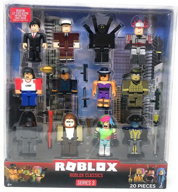 No code provided Create exciting new adventures with iconic characters from the world of Roblox! This set includes twelve Series 3 figure, as well as interchangeable parts and accessories that can be mixed-and-matched with other characters from your collection.