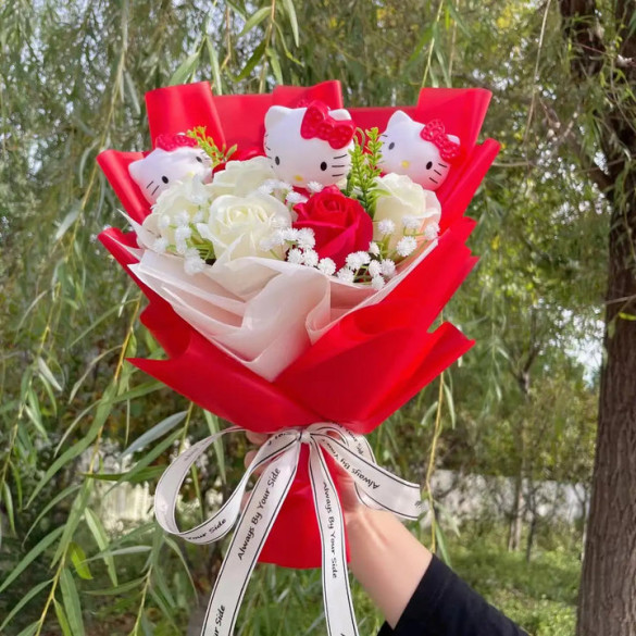 Delight your loved ones with the charming Hello Kitty Flower Bouquet, perfect for Mother's Day or graduation celebrations. Standing at 30cm (11.81 inches), this vibrant red bouquet combines the iconic Hello Kitty design with a touch of floral elegance. Make any occasion memorable with this unique and adorable gift.