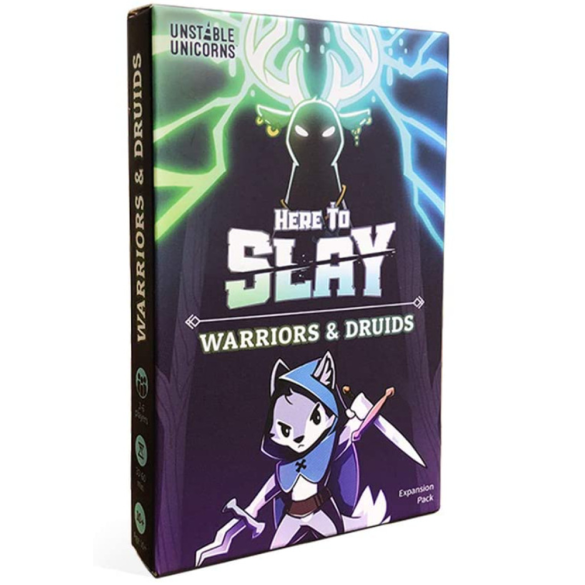 Here to Slay Warriors & Druids Expansion Pack. Here to Slay Warriors & Druids Expansion Pack is designed to be added to your Here to Slay Card Game. This pack includes 31 standard-sized cards, 2 oversized Party Leader cards, and 2 oversized Monster cards and introduces Warrior and Druid classes to the game. Here to Slay was one of Kickstarter’s top 50 most backed projects of all time!