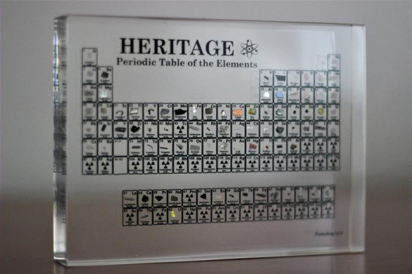 The Heritage Periodic Table measures approximately 4.5" x 6" x 1". The collection contains 83 individual element samples. Due to its rarity and radioactivity, Technetium was excluded from the collection as was Promethium. Except for Uranium and Thorium, elements 84 (Polonium) through 118 (Oganesson) were also excluded.