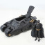 The must have vehicle from the new film Batman the Dark Knight. This all new version of the "tumbler" vehicle features two bat vehicles in one. It comes with the touch of a button, the Batmobile breaks open from battle damage and shoots out the Bat-Pod wheelie action cycle. This includes one in-scale dedicated 5 "Batman figure.
