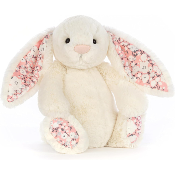 Introducing the Jellycat Blossom Cream Bunny medium plush, measuring 36cm or 14.17 inches in size. This soft stuffed bunny is perfect for cuddling and makes a great gift for any occasion. Bring home this adorable and huggable plush toy today.