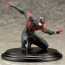 Kotobukiya ArtFX Spider Miles Morales Figure. Spider-Man crouches low, left hand extended to sling a web, right arm back for balanceSpider-Man looks amazing in his black costume with red highlights.