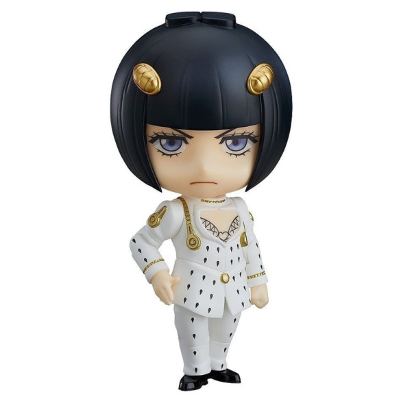 Good Smile Nendoroid Bruno Bucciarati 1175 Action Figure. Bruno Bucciarati is the logical character from JoJo's Bizarre Adventure: Golden Wind. Due to the figure's complete articulation, you can present him in a number of poses. He comes with three face plates: one for his neutral expression, one for battle, and one for sidelong glances. Sticky Fingers, a "Stand arm," and a zipper portion inspired on his Stand are also included. Bucciarati can also be seen coming out of the zipper component that is provided. Included are special handpieces to imitate his "Arrivederci" posture. Don't forget to include him in your collection! Golden Wind from This JoJo's Bizarre Adventure Around 4-inches tall, Bruno Bucciarati Nendoroid Action Figure - ReRun.