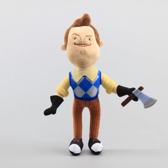 Axe Hello Neighbor Plush Toy. Stuffed plush toys are the most popular childhood favorite among toddlers, babies and kids. Just perfect for little hands to give big hugs and carry with them everywhere they go. Surface-washable for easy cleaning.